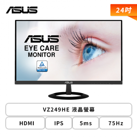 【24型】華碩 VZ249HE 液晶螢幕 (HDMI/D-Sub/IPS/5ms/75Hz/超薄無邊框/不閃屏/低藍光/無喇叭/三年保固)