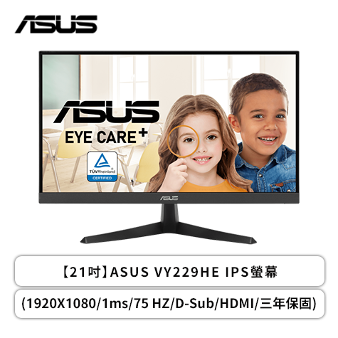 【22型】華碩 VY229HE 液晶螢幕 (HDMI/D-Sub/IPS/1ms/75Hz/Adaptive-Sync/不閃屏/低藍光/無喇叭/三年保固)【福利品出清】