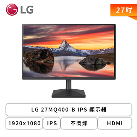 【27型】LG 27MQ400-B 液晶螢幕 (HDMI/D-Sub/IPS/5ms/75Hz/FreeSync/不閃屏/低藍光/無喇叭/三年保固)
