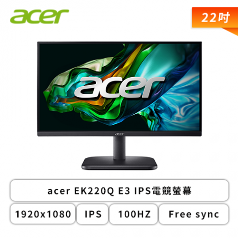 【22型】Acer EK220Q E3 液晶螢幕 (HDMI/D-Sub/IPS/1ms/100Hz/FreeSync/低藍光/不閃屏/無喇叭/三年保固)