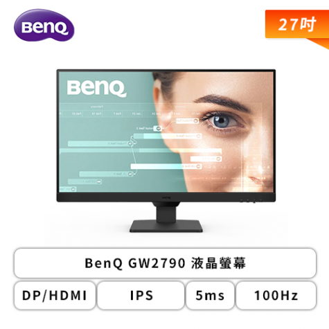 【27型】BenQ GW2790 液晶螢幕 (DP/HDMI/IPS/5ms/100Hz/光智慧2.0/不閃屏/低藍光/Coding模式/內建喇叭/三年保固)