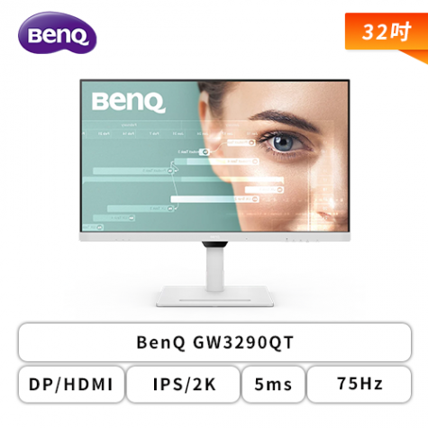 【32型】BenQ GW3290QT 白色 液晶螢幕 (DP/HDMI/Type-C(65W)/IPS/2K/5ms/75Hz/光智慧/菊練串/Coding模式/不閃屏/低藍光/可升降/可旋轉/雙向抗噪麥克風/內建喇叭/三年保固)
