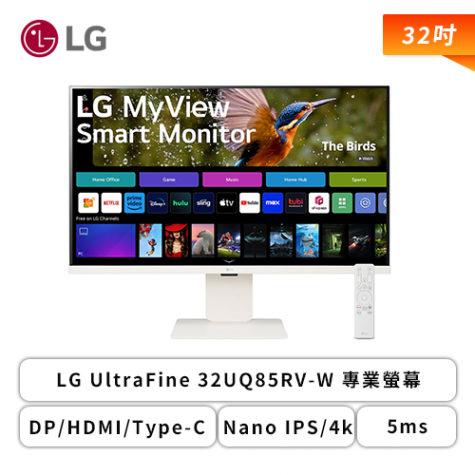 【32型】LG UltraFine 32UQ85RV-W 專業螢幕 (DP/HDMI/Type-C/Nano IPS/4k/5ms/HDR400/附贈校色器/可旋轉/可升降/內建喇叭/三年保固)