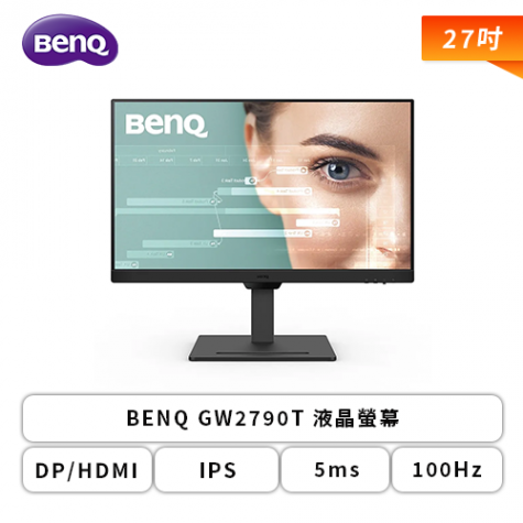 【27型】BENQ GW2790T 液晶螢幕 (DP/HDMI/IPS/5ms/100Hz/光智慧/不閃屏/低藍光/可升降/可旋轉/內建喇叭/三年保固)