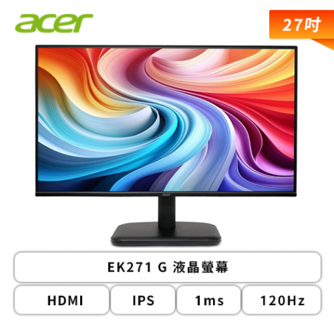 【27型】Acer EK271 G 液晶螢幕 (HDMI/D-Sub/IPS/1ms/120Hz/FreeSync/不閃屏/低藍光/無喇叭/三年保固)
