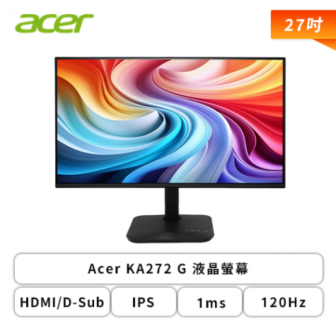 【27型】Acer KA272 G 液晶螢幕 (HDMI/DP/IPS/1ms/120Hz/HDR10/AdaptiveSync/不閃屏/內建喇叭/三年保固)【福利品出清】