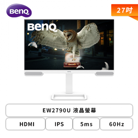 【27型】BenQ EW2790U 白色 液晶螢幕 (DP/HDMI/Type-C(65W)/IPS/4K/5ms/HDR 400/光智慧2.0/不閃屏/低藍光/可升降/可旋轉/內建喇叭/三年保固)
