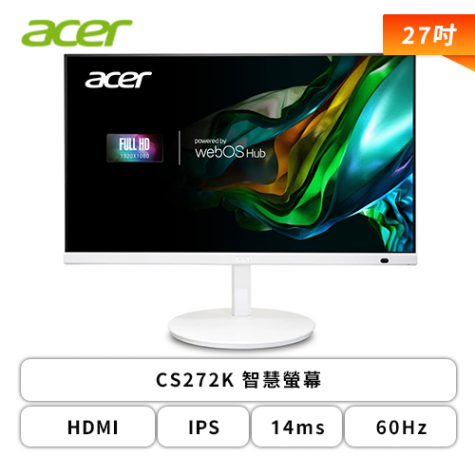 【27型】Acer CS272K 白色 智慧螢幕(HDMI/IPS/4K/內建webOS/支援WiFi+藍芽/可升降/可旋轉/內建喇叭/三年保固)