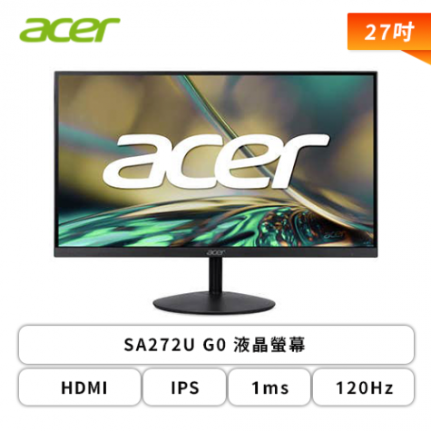 【27型】Acer SA273 G0黑 液晶螢幕 (HDMI/D-Sub/IPS/1ms/120Hz/AdaptiveSync/內建喇叭/三年保固)