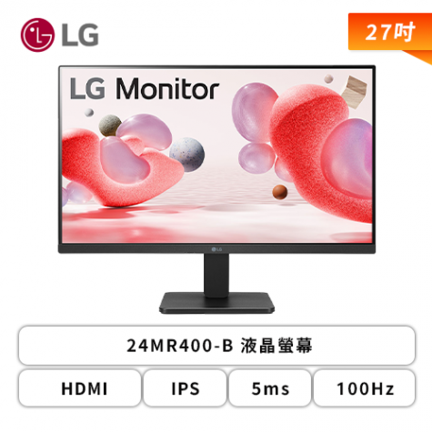 【24型】LG 24MR400-B 液晶螢幕 (HDMI/D-Sub/IPS/5ms/100Hz/FreeSync Premium/低藍光/不閃屏/無喇叭/三年保固)