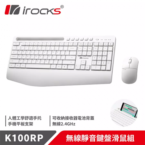 i-rocks IRK100RP 無線靜音薄膜鍵鼠組(白色/無線/薄膜式/2400Dpi/中文/一年保固)