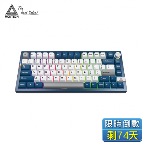 君主科技 Montech MKey PRO 普魯士藍 三模機械式鍵盤(藍色/有線-無線-藍牙/茶軸/PBT/熱插拔/降噪PORON墊片/75% 81鍵/中文/1年保固)