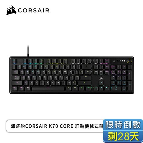 海盜船 Corsair K70 CORE 紅軸機械式鍵盤(黑色/有線/紅軸/RGB/中文/2年保固)