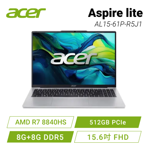 acer lite AL15-61P-R5J1 銀 宏碁高效能筆電/R7 8840HS/8GB+8GB DDR5/512GB PCIe/15.6吋 FHD 1920 x 1080/W11/不包含包包及滑鼠