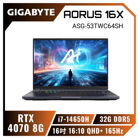 滿血出擊★RTX4070 GIGABYTE AORUS 16X ASG-53TWC64SH 星夜灰 技嘉14代滿血旗艦款電競筆電/i7-14650HX/RTX4070 8G/32GB DDR5/1TB PCIe/16吋 16:10 QHD+ 165Hz/W11/三區RGB背光鍵盤【整新福利品】