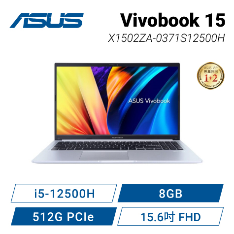 H高效處理器★高擴充性 ASUS Vivobook 15 X1502ZA-0371S12500H 冰河銀 華碩高效戰鬥筆電/i5-12500H/8GB/512G PCIe/15.6吋 FHD/W11【整新福利品】