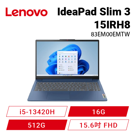 LENOVO IdeaPad Slim 3i Lenovo IdeaPad Slim 3 15IRH8 83EM00EMTW文書效能筆電 藍/i5-13420H/16G LPDDR5/512G/W11/15.6吋 FHD/W11/2年保【福利品】