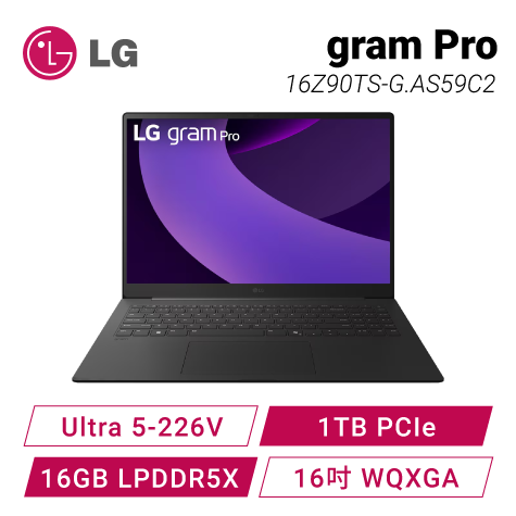 Copilot+ 極致輕薄 LG gram Pro 16Z90TS-G.AS59C2 太空灰 極致輕薄AI筆電/Ultra 5-226V/16GB LPDDR5X/1TB PCIe/16吋 WQXGA/W11/1.24kg/2年保
