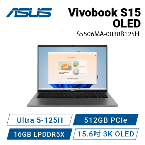 U5處理器★3K OLED面板 ASUS Vivobook S15 OLED S5506MA-0038B125H 迷霧藍 華碩OLED輕薄高效筆電/Ultra 5-125H/16GB LPDDR5X/512GB PCIe/15.6吋 3K OLED/W11/含原廠包包及滑鼠【整新福利品】