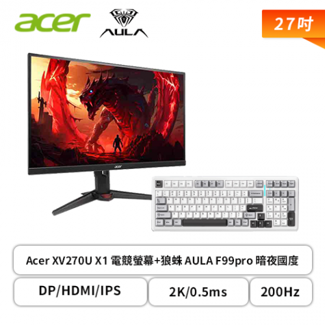 【破盤價】【27型】Acer XV270U X1 電競螢幕 (DP/HDMI/IPS/2K/0.5ms/200Hz/AMD FreeSync Premium/內建喇叭/三年保固)+狼蛛 AULA F99pro 暗夜國度(淺灰+白+深灰)