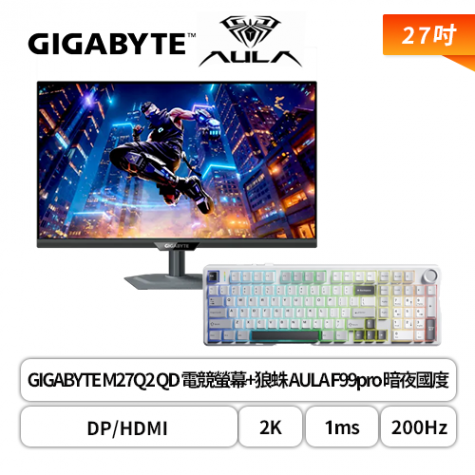 【破盤價】【27型】GIGABYTE M27Q2 QD 電競螢幕 (DP/HDMI/2K/SS IPS/1ms/200Hz/HDR400/99% DCI-P3/KVM/可升降/三年保固)+狼蛛 AULA F99pro 暗夜國度 (淺灰+白+深灰)