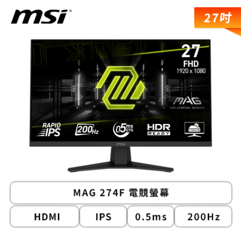 【27型】MSI MAG 274F 電競螢幕 (DP/HDMI/Rapid IPS/0.5ms/200Hz/Adaptive-Sync/HDR READY/AI Vision/無喇叭/三年保固)