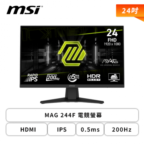 【24型】MSI MAG 244F 電競螢幕 (DP/HDMI/Rapid IPS/0.5ms/200Hz/FreeSync Premium/HDR READY/AI VISION/無喇叭/三年保固)