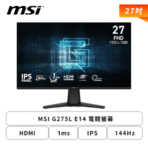【27型】MSI G275L E14 電競螢幕 (DP/HDMI*1/IPS/FHD/1ms/144Hz/HDR/無喇叭/三年保固)