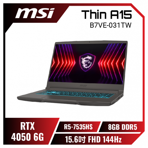 AMD強效★高CP值戰鬥電競 MSI Thin A15 B7VE-031TW 微星戰鬥電競筆電/R5-7535HS/RTX4050 6G/8GB DDR5/512GB PCIe/15.6吋 FHD 144Hz/W11/藍色背光電競鍵盤