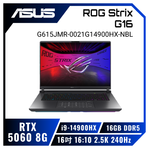 14代i9處理器★RTX5060 ASUS ROG Strix G16 G615JMR-0021G14900HX-NBL 電光綠 華碩旗艦滿血版電競筆電/i9-14900HX/RTX5060 8G/16GB DDR5/1TB PCIe/16吋 16:10 2.5K 240Hz/W11/含ROG後背包及電競滑鼠