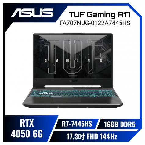 強效AMD★滿血RTX4050 ASUS TUF Gaming A17 FA707NUG-0122A7445HS 月影灰 華碩薄邊框軍規電競筆電/R7-7445HS/RTX4050 6G/16GB DDR5/512GB PCIe/17.3吋 FHD 144Hz/W11/含TUF電競滑鼠