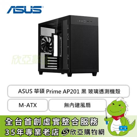 華碩 Prime AP201 黑 透側版 玻璃透側機殼 (M-ATX/Type-C/內建風扇後1/方形金屬網孔/顯卡338mm/塔散170mm)