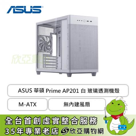 華碩 Prime AP201 白 透側版 玻璃透側機殼 (M-ATX/Type-C/內建風扇後1/方形金屬網孔/顯卡338mm/塔散170mm)