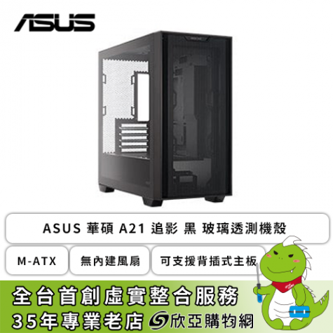 華碩 A21 黑 玻璃透側機殼 (M-ATX/無內建風扇/支援背插式主板/顯卡380mm/塔散165mm)