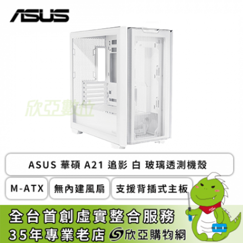 華碩 A21 白 玻璃透側機殼 (M-ATX/無內建風扇/支援背插式主板/顯卡380mm/塔散165mm)
