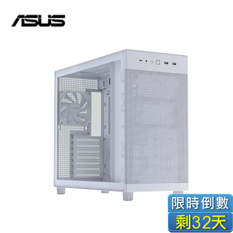 華碩 A32 PLUS 白 全景玻璃機殼 (ATX/Type-C/內建風扇側3後1/MR120 ARGB風扇/雙艙式設計/顯卡420mm/塔散165mm)