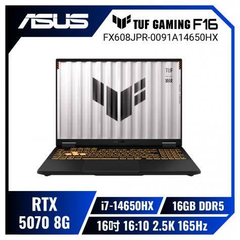 超頻HX處理器★RTX5070 ASUS TUF Gaming F16 FX608JPR-0091A14650HX 御鐵灰 華碩軍規電競筆電/i7-14650HX/RTX5070 8G/16GB DDR5/1TB PCIe/16吋 16:10 2.5K 165Hz/W11/含TUF電競滑鼠