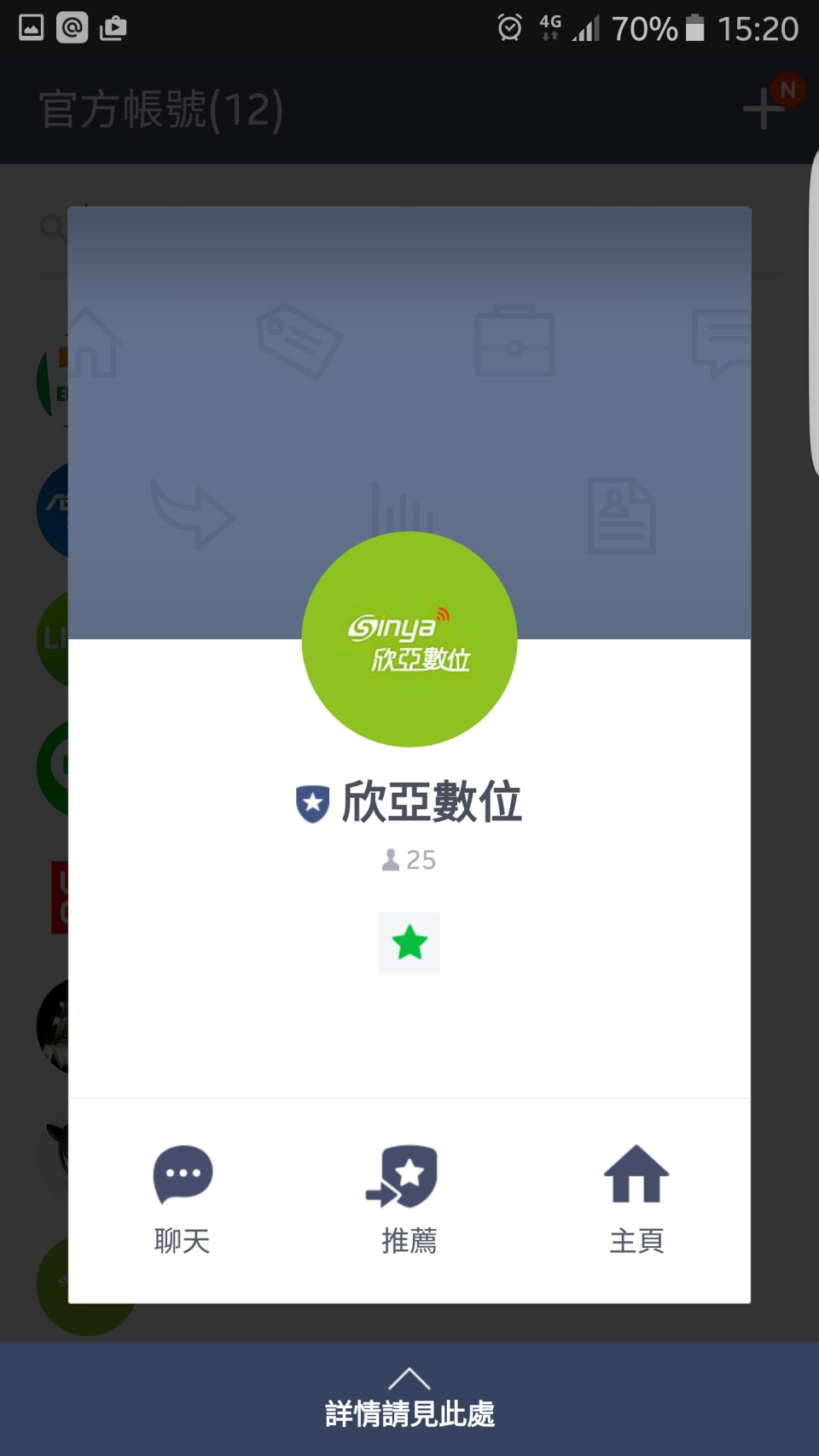 再來到LINE裡面找官方帳號的群組