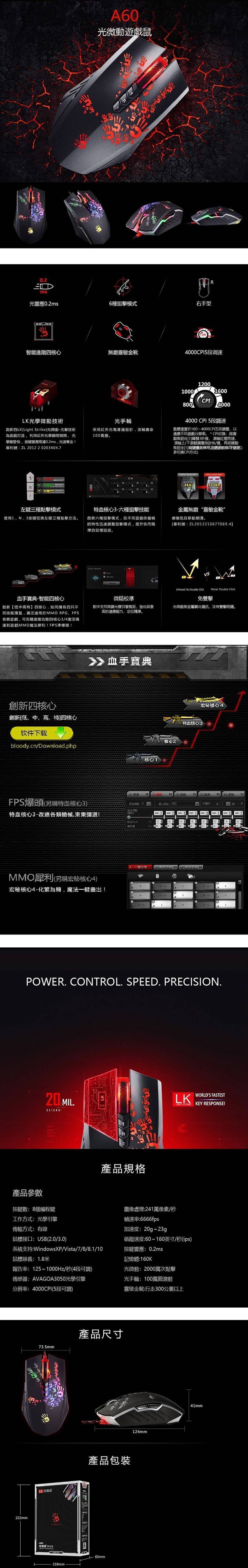 -滑鼠速度於100~4000CPI五段調整,以適應不同遊戲分辯率