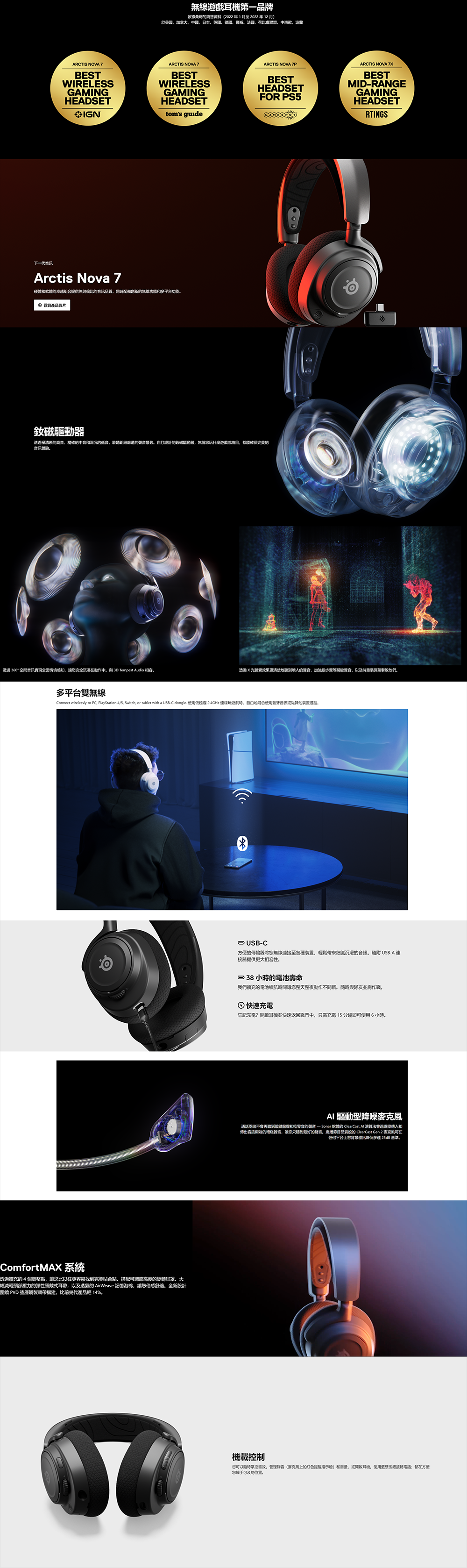 USB-C 快速充電,38 小時電池壽命,充電 15 分鐘可使用 6 小時