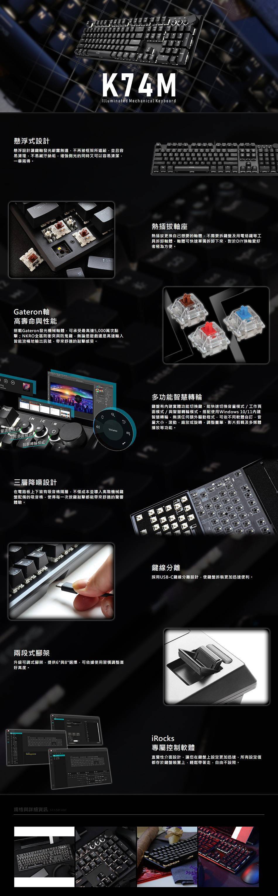 •全鍵區採用Gateron熱插拔軸座,可自行替換鍵軸