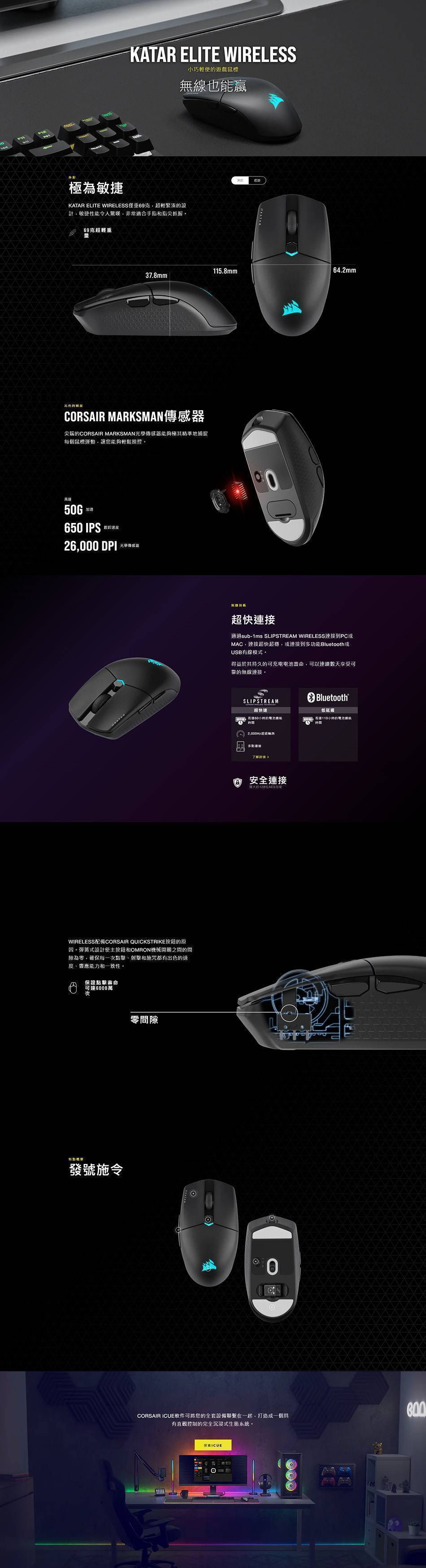 2、精準的CORSAIR MARKSMAN,26000 DPI、650 IPS、50G加速度