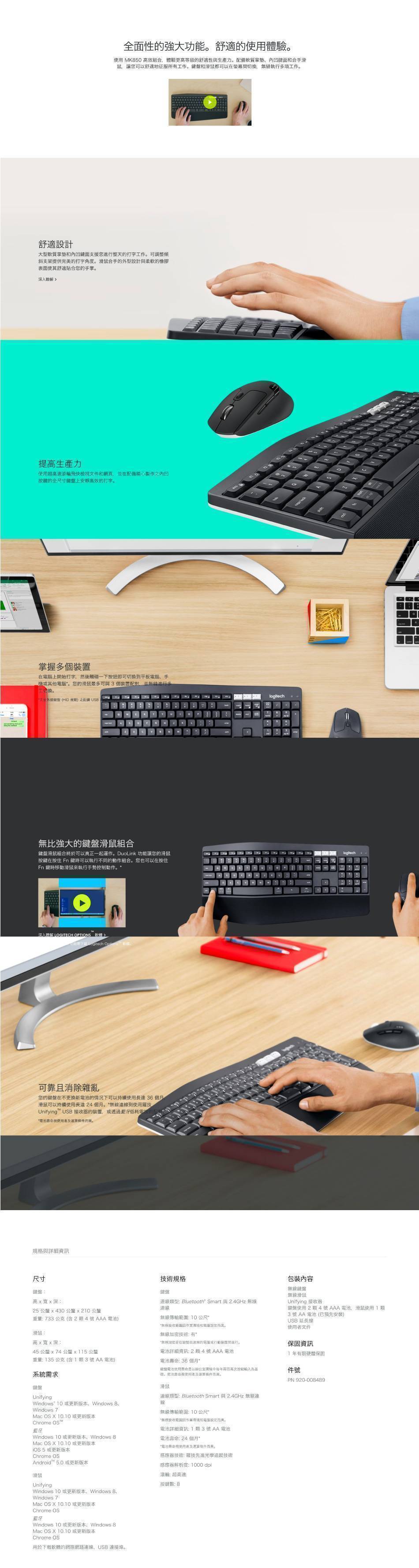 舒適鍵盤掌托 DuoLink技術 有線/無線:無線/藍牙連接模式 保固期限:1年