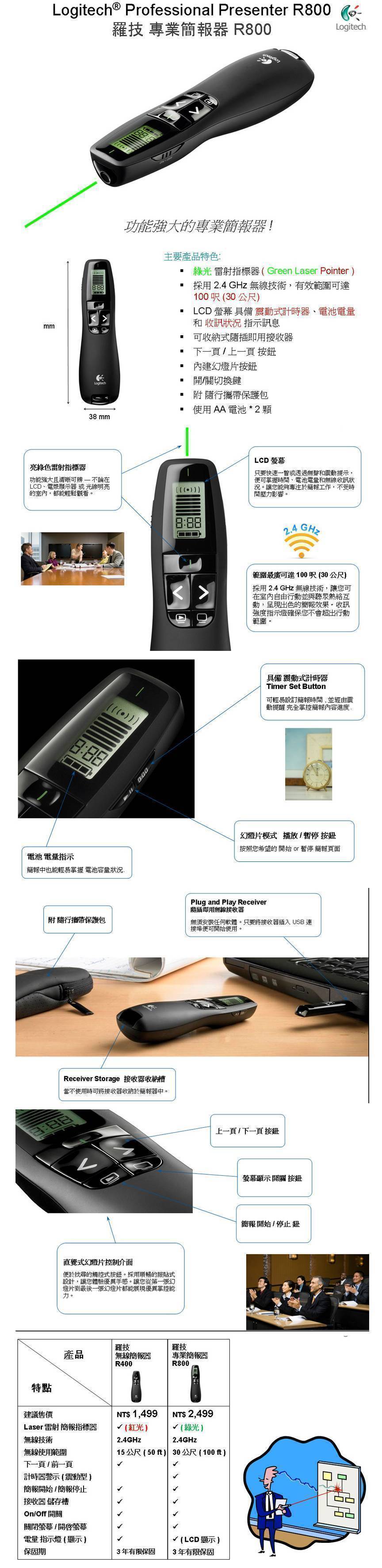 綠光雷射指標器 採用2.4GHz無線技術 LCD螢幕 可收納式隨插即用接收器 內建幻燈片按鈕 隨行攜帶保護袋