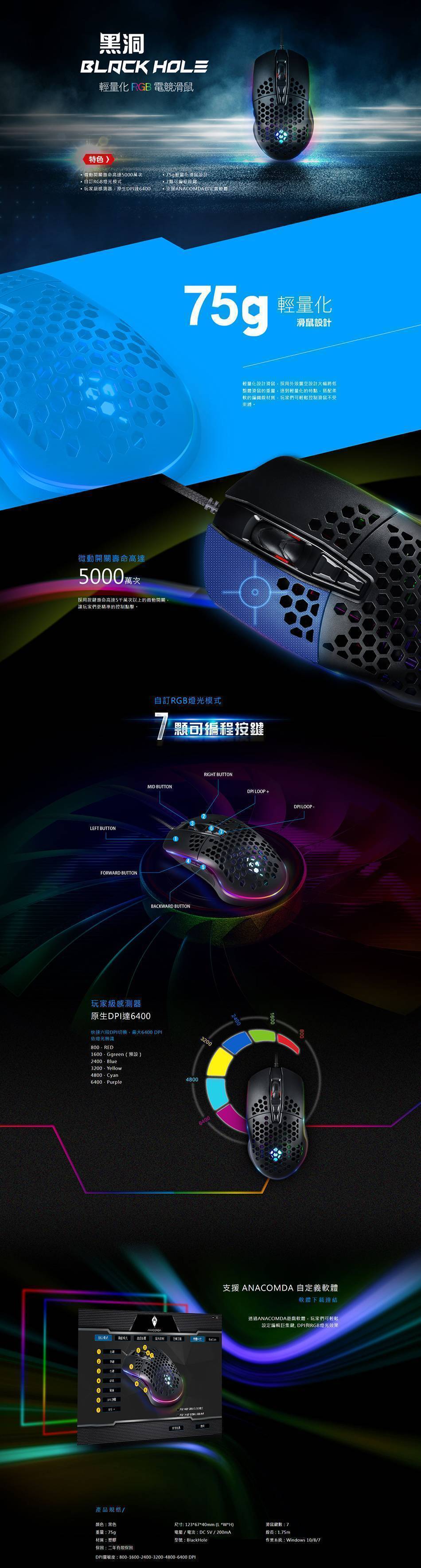 ANACOMDA巨蟒 BLACKHOLE 黑洞 RGB電競滑鼠