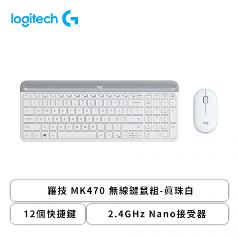 羅技 MK470 無線鍵鼠組-真珠白/2.4GHz Nano接受器/12個快捷鍵/電池壽命增長