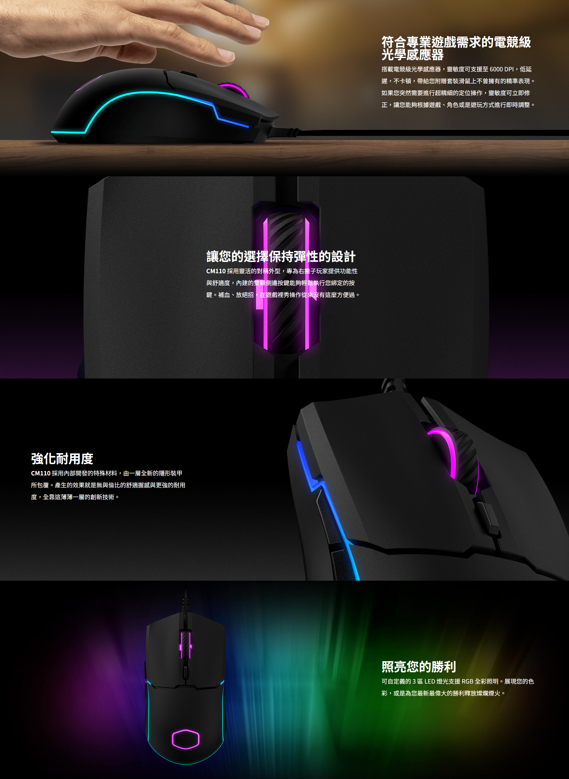 可自訂 RGB 燈效模式/燈效速度/燈效顏色及方向