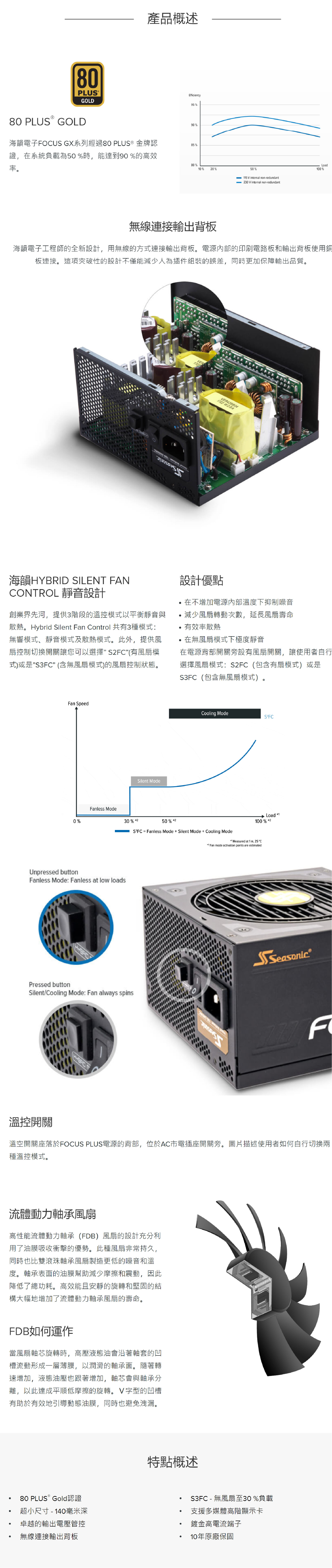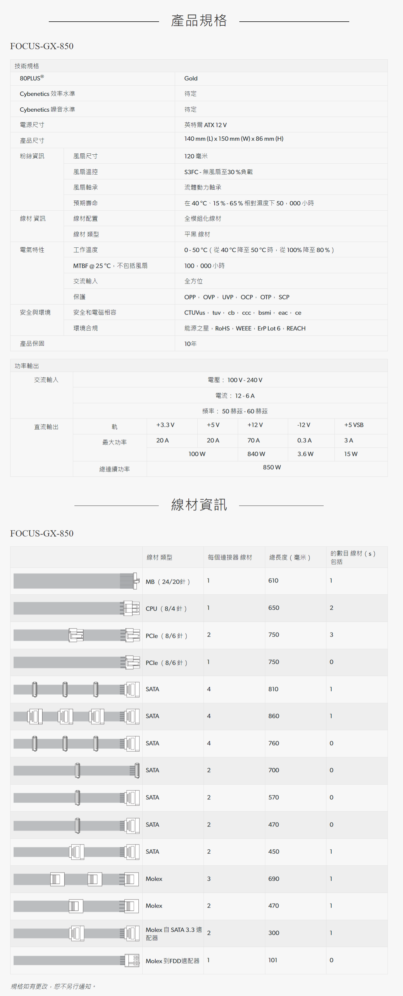 海韻 Focus GX-850 (80+金牌/ATX/全模組/十年保固)