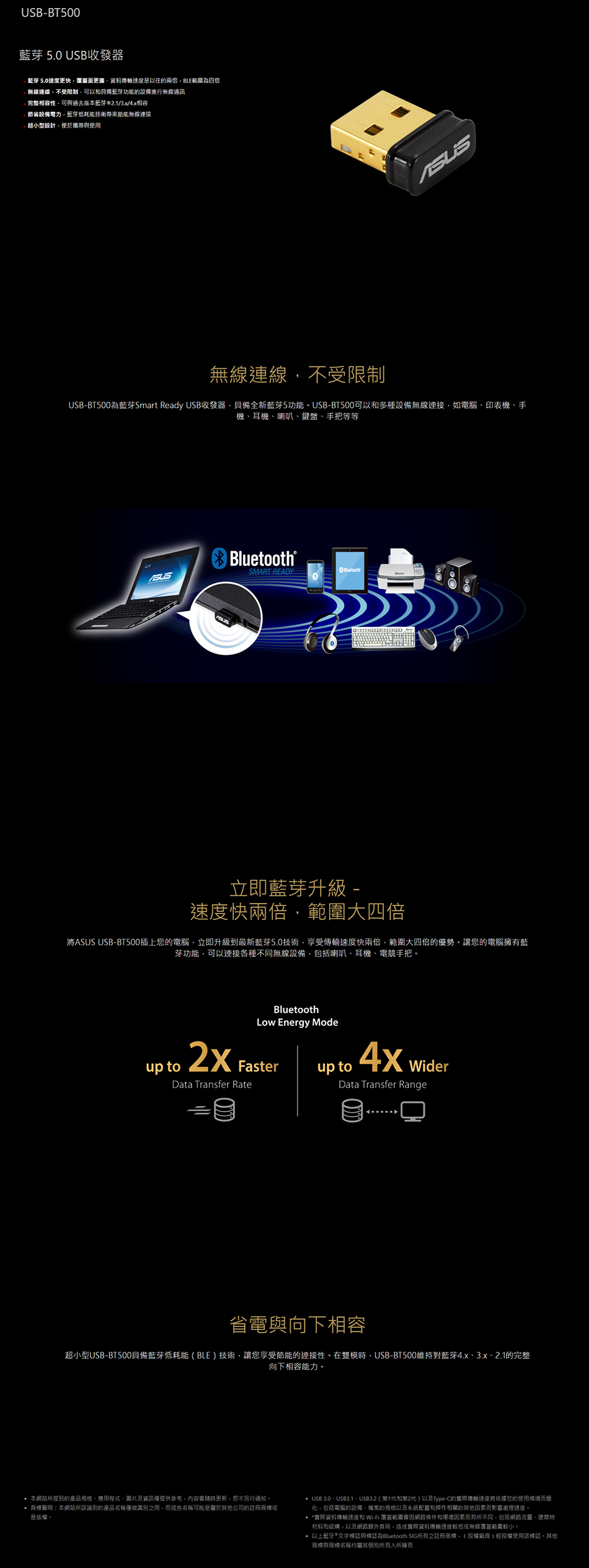 ASUS 華碩USB-BT500 藍芽 5.0 USB收發器/最高可達40m(開放空間)/三年保固