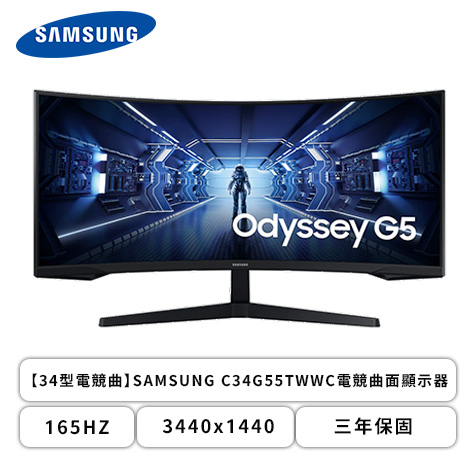 【34型】三星 Odyssey G5 C34G55TWWC 電競螢幕 (DP/HDMI/VA/曲面/2K/1ms/165Hz/HDR10/FreeSync Premium/低藍光/不閃屏/無喇叭/三年保固)